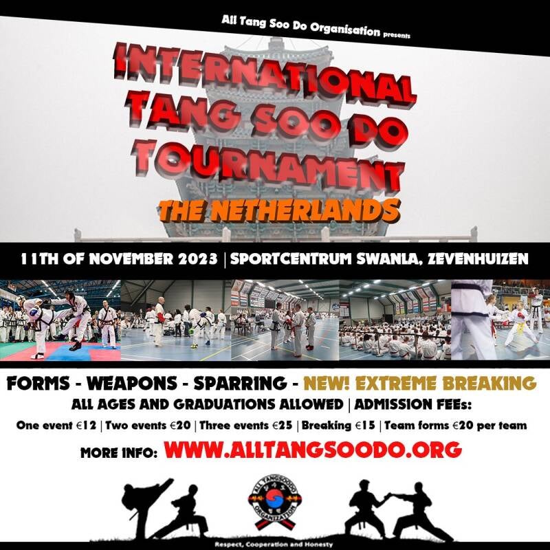 Op zaterdag 11 november organiseert de All Tangsoodo Organization weer een groot internationaal toernooi in Zevenhuizen.